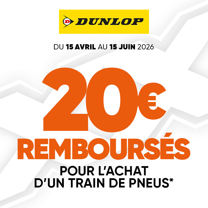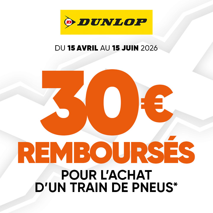Profitez dès maintenant de 30€ de REMBOURSEMENT pour l’achat d’un train de pneus Dunlop.