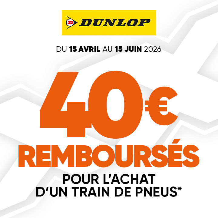 Profitez dès maintenant de 40€ de REMBOURSEMENT pour l’achat d’un train de pneus Dunlop.