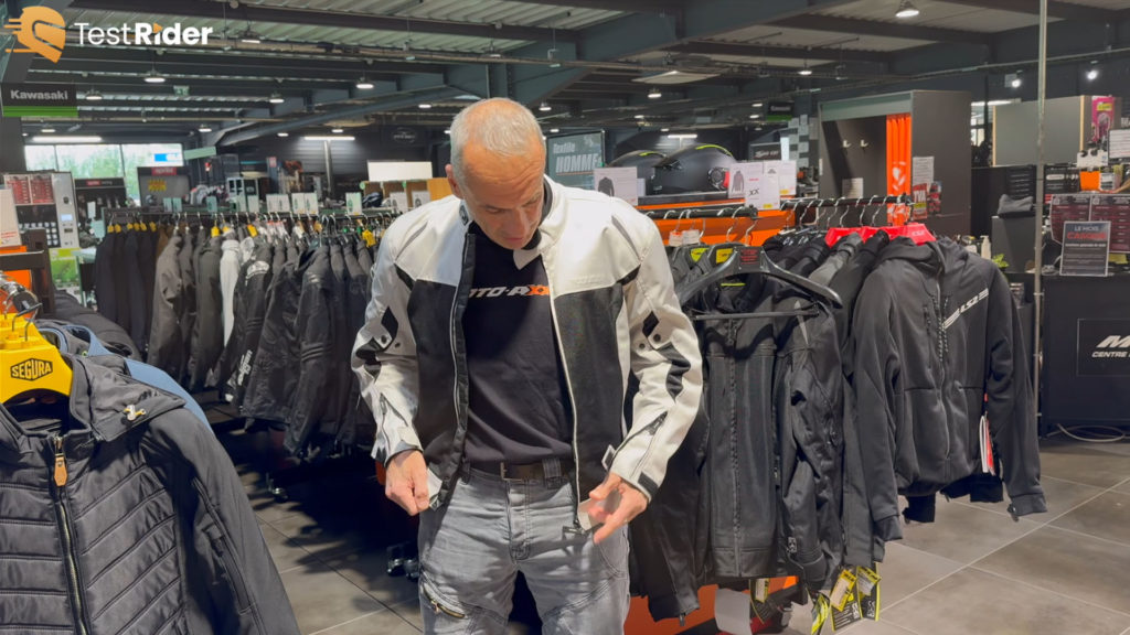 Pensée pour l’été, le blouson intègre des ventilations sur les manches et les côtés. Elles se ressentent bien dès que la vitesse augmente et améliorent le confort quand les températures montent. Les manches peuvent être resserrées pour éviter le flottement, notamment lors d’une conduite plus dynamique. Le dos reste bien en place et la coupe générale ne gêne pas le mouvement.