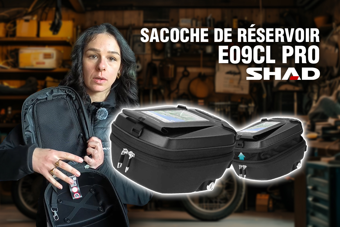 Aujourd’hui, Roxane, de Moto-Axxe Les Sables d’Olonne, nous présente la sacoche de réservoir Shad E09CL Pro, après quelques roulages de test, voici son analyse.
