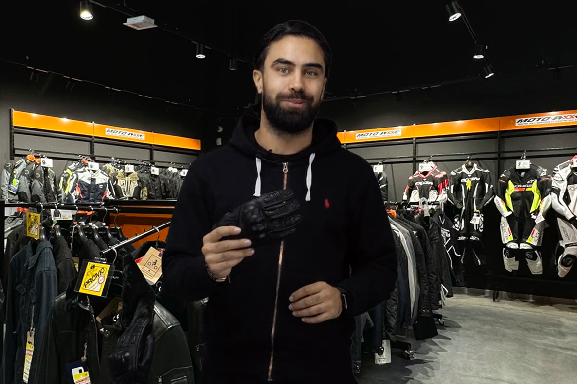 Raphaël et Nicolas chez Moto-Axxe France présentent les gants BLH Be Hero, des vrais gants moto mi-saison polyvalents, conçus en cuir de chèvre et qui sont à la fois disponible en noir ou marron.