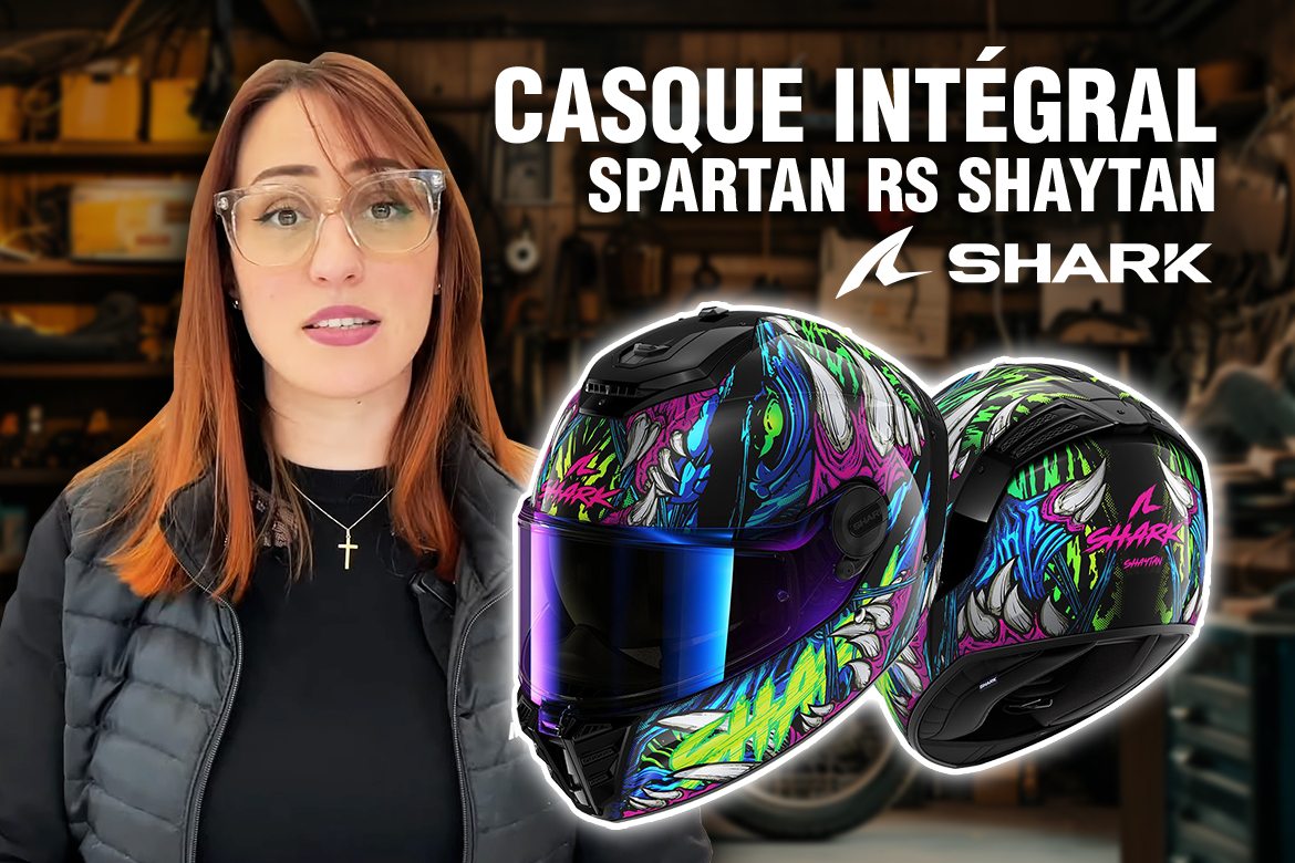 Bonjour tout le monde, je suis Mégane du Moto Axxe de Rosheim en Alsace. Aujourd’hui, je vous présente le casque SHARK Spartan RS. Ce modèle se distingue par sa coque en fibre de composite multiaxial, garantissant légèreté et robustesse. Il est homologué norme 2206, offrant une sécurité optimale. Le casque dispose de trois entrées d’air stratégiquement placées : une à la mentonnière et deux au-dessus de la tête, assurant une ventilation efficace. La visière, verrouillable, est ultra-performante et facile à démonter grâce à un mécanisme à vis à ressort. Le Spartan RS intègre également une visière solaire, avec une commande située au-dessus de la tête pour un accès rapide. Le casque est compatible avec l’intercom Shark et dispose du système Shark Easy Fit spécialement conçu pour les porteurs de lunettes.
