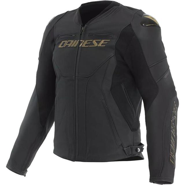 Blouson moto en cuir Dainese Racing 5, conçu pour une conduite sportive et confortable au printemps et en été.