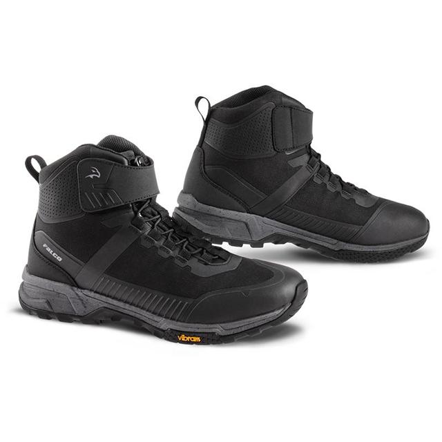 Baskets moto. Tige laminée en "Micro-Synth" et inserts ventilés "Rip-stop". Membrane "High-Tex". Renforts malléoles en “ABS”. Fermeture combinée par lacets “Quick-lace” et velcro. Semelle Vibram en caoutchouc bi-composant à haute adhérence.
