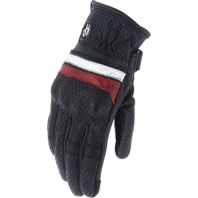 Gants été. Cuir de chèvre perforé. Manchette courte. Protection du poing par une coque carbone. Paume renforcée par des fibres aramides. Serrage poignet par velcro. Produit répondant à la norme CE niveau 1KP.