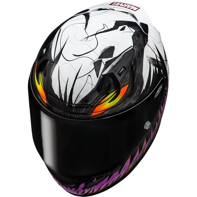 Casque intégral. Technologie Premium Integrated Matrix (P.I.M. EVO), matériaux renforcés (carbone, aramide hybride, fibres naturelles) excellente résistance aux chocs, confort optimal et légèreté accrue. Fermeture jugulaire par boucle double-D. Écran HJ-42 avec protection UV à 99 %, revêtement anti-rayures et compatible Pinlock (inclus). Structure aérodynamique. Système d'extraction d’urgence. Champ de vision élargi. Intérieur antibactérien, amovible et lavable. Livré avec visière claire, visière fumée foncée, Pinlock, cache menton et cache nez. Homologué ECE 22-06.