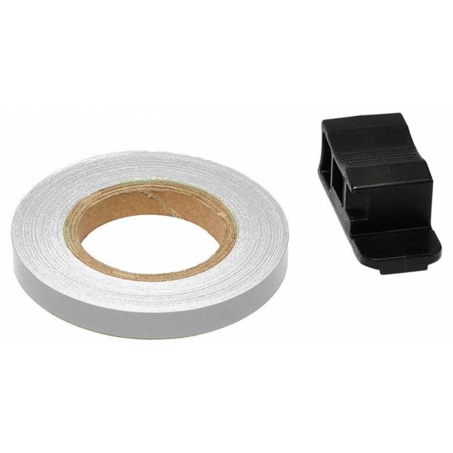 Filet de jantes réfléchissant argent avec applicateur. Longueur 6m pour couvrir 2 roues recto/verso.