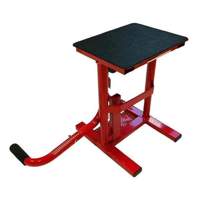 Lève moto pour Tout-Terrain Maxxe avec axe renforcé. Utilisation lors de la maintenance ou du remplacement de roue. Bras de levier étudié pour lever votre moto facilement. Position Basse 30 cm. Position Haute 41 cm. Plateau à outils. Montage facile. Tampon en caoutchouc 3 mm. Charge maximale: 160KG.