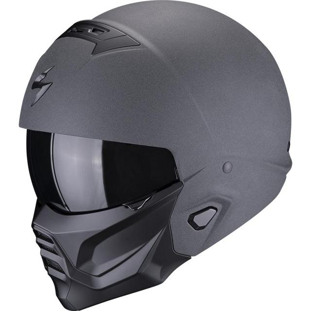 Casque jet transformable. Double configuration jet et intégrale avec mentonnière amovible de type masque. Fabriqué en polycarbonate, calotin en EPS double densité pour une protection optimale. Intérieur KwikWick C, hypoallergénique et absorbant l'humidité, démontable et lavable. Système Kwikfit permet un port confortable des lunettes, écran solaire interne Speedview® antibuée bloque 100% des UV. Système de ventilation Scorpion Air Channel®, circulation d'air optimale et réduction des bruits parasites. Livré avec caches de finition pour rouler sans mentonnière, une housse de transport, et peut recevoir un Intercom. Fermeture jugulaire à boucle micrométrique. Homologué ECE R22.06.