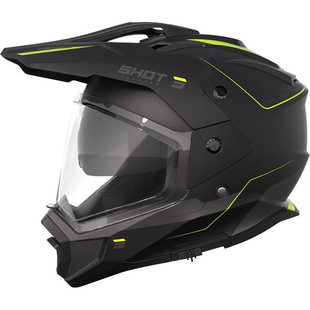 Casque cross. Coque SRS (Synthetic Reinforced Shell) bonne résistance aux impacts. Écran solaire intégré et préparé pour recevoir un système Bluetooth. Intérieur démontable, lavable et hypoallergénique, mentonnière dotée d’un insert «Shock-Absorber». 5 diffuseurs frontaux, 3 extracteurs arrière et visière ventilée, excellente circulation de l’air. Fermeture de la jugulaire par boucle double D. Préparé pour accueillir un Pinlock® 70 Max Vision. Homologué normes ECE 2206 et DOT.
