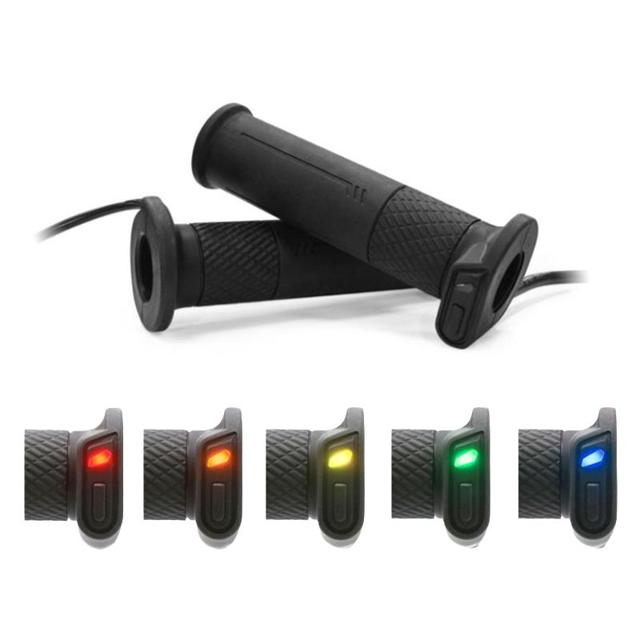 Poignées chauffantes Tecno Globe Gold 120 Apollo 2 avec revêtement ergonomique pour un confort optimal. Interrupteur ON/OFF intégré à gauche. Indicateurs multicolores pour suivre la batterie et le niveau de chauffe. 5 niveaux de chauffe réglables. Signal batterie faible pour alerter le niveau de charge. Mémorisation du dernier niveau utilisé. Changement rapide de température. Alimentation 12 V. Consommation de 1,26 W à 5,52 W selon le niveau. Utilisation de gants recommandée. Batterie de 6 Ah ou plus recommandée. Conçues pour guidon de 22 mm. Longueur 120 mm. Homologuées ECER10.